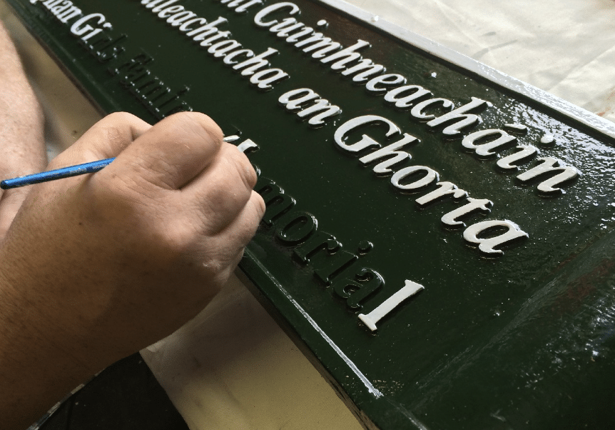 The final stage of the process involves the painting of the sign. The sign is first baked and then polyester powder-coated to the customer’s desired colour. It is then hand-painted by in our in-house artist to a high standard finish.