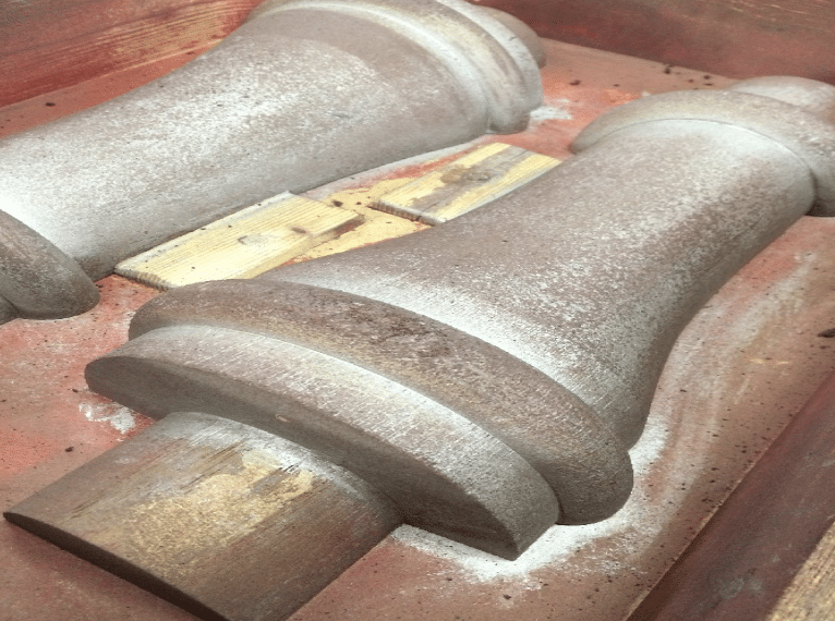 When the metal has cooled, the moulds are broken to reveal the cast sign within. The sign is checked to see if it is of a satisfactory standard. If it is not, the process is repeated and the sign re-cast.